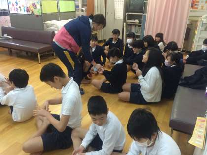 発育2測定の時間に、一人一人の手洗い調べをしました。