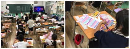 1年生の「ずこう」では、画用紙を使ってオリジナルのTシャツを作っています。
