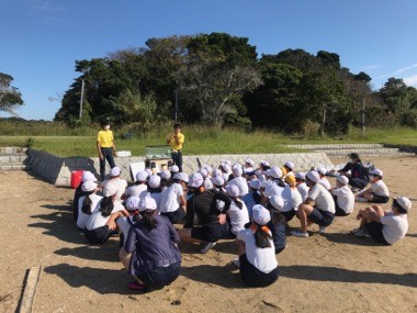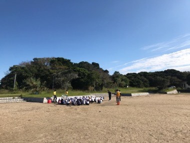 磯観察チームは、海のこと、磯にいる生き物のことなどについて学んだ後に、磯へ出発しました。