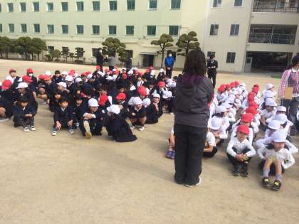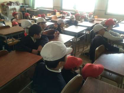 昨日は、地震・津波を想定した避難訓練を行いました。運動場に避難して安全確認をした後、3階の教室に2次避難をしました。各教室では、行動の振り返りとともに、被災経験のある教員が当時の様子を話したりしました。
