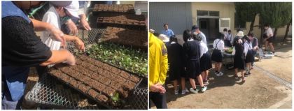 9月2日に2年生と飼育栽培委員会がキンセンカ、パンジー、ビオラなどの種蒔きをしましたが、地域の方々の管理がゆきとどき、どの種もしっかりと成長しました。