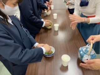 6年生 お茶・お花体験(地域の方に教えていただいて)