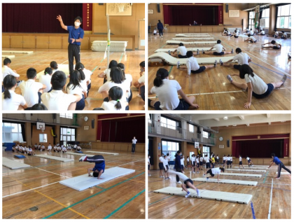 マット運動の指導では、うまくやるコツをお教えいただき、6年生のみんなはみるみるうちにうまくなっていきました。