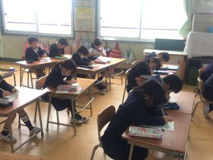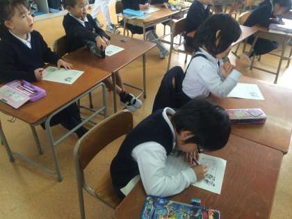 朝の読み聞かせや月1回昼休みにお話会を開いてくださっているボランティア「「ほうせんか」のみなさんに1年生がお礼の手紙を書きました。
