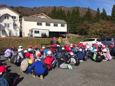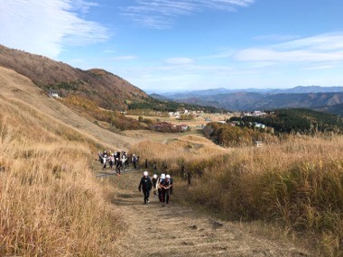 スタート直後のモニュメントでクラスごとの写真を撮った後、それぞれの班に分かれて登ります。