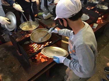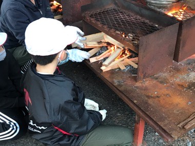 マッチを擦って、火おこしです。なかなか火がつかず悪戦苦闘する場面もありましたが、どの班もバッチリ勢いの良い火がおこりました。