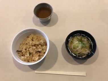 林間学習。ハチ高原での最後の食事は、五目ごはんとにゅうめんでした。