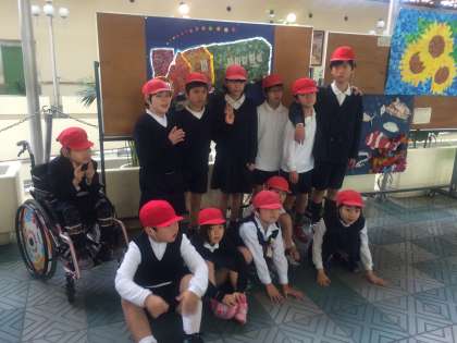 27日(火)なかよし学級12人(残念ながらA君は、体調が悪く欠席)と保護者の方々で、長居スポーツセンターで開かれている「障がいを受けている子どもに学ぶ図工展」の見学に行きました。