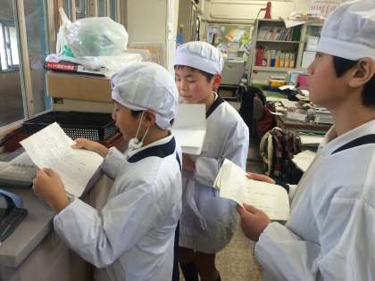 給食の時間に給食委員会のメンバーが、給食クイズを出してくれました。調理員さんの人数、牛乳の青いかごについて、低学年と高学年のパンの大きさ、日本の給食は、どこで始まったかなどのクイズでした。今週は、給食週間です。しっかり味わって食べましょうね。