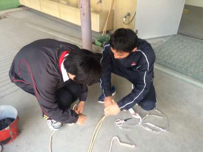 5年生の先生は、大縄跳びの縄が長すぎるため、はさみで切って調整してくれていました。