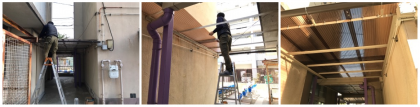 給食室と西校舎の間にある学習園に抜ける通路の屋根が古くなり、雨が漏るようになっていました。