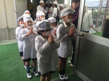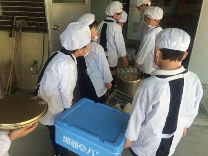 午前中4時間学習した後は、給食です。最初のころは、6年生に教室まで運んでもらっていましたが、今では当番活動もとてもスムースにできるようになりました。
