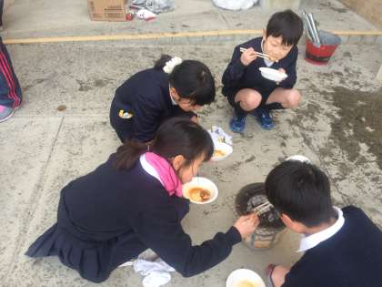 苦労して食べた餅は、ちょっぴり焦げ目もあり、とってもおいしかった!!と大満足の子どもたちでした。