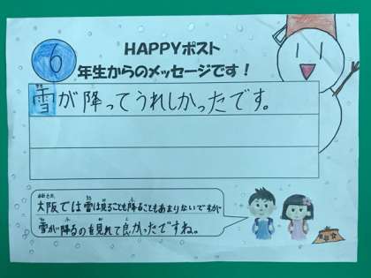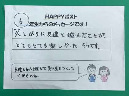 児童会で取組んでいるHAPPY(ハッピー)ポスト。今日のお昼の児童会ラジオでも、みんなのハッピーなできごとの紹介がありました。