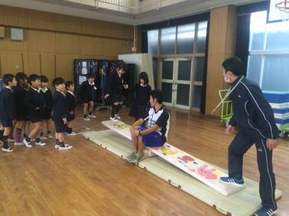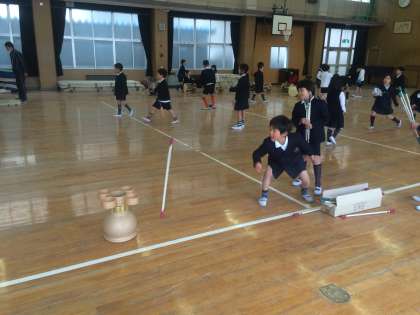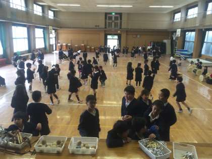 今日の昼休みは、講堂で韓国・挑戦の文化にふれました。ペンイ(韓国のこま)を上手に回して「みてみて!」とうれしそう。5年生が、下の学年にてをさしのべたり、遊びを教えたりする場面もみられました。