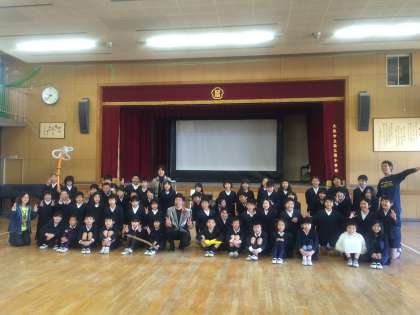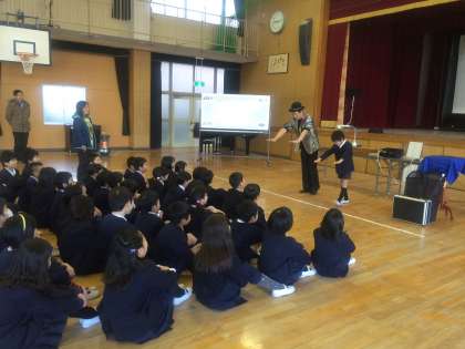 「人を楽しませるためには、何が必要だと思いますか?」と質問され、子どもたちはいろいろ考えていました。オクチさんの答えは、「おもいやり」。「みんなに笑ってもらうためには、その人のことを考えなくてはだめなんだよ。」という言葉が印象的でした。