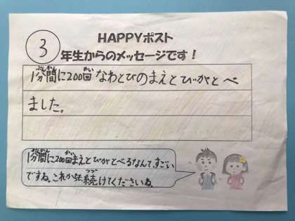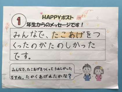 今日の給食では、児童会によるHAPPY(ハッピー)ポストがありました。それに合わせて、ホームページでもHAPPY(ハッピー)ポストの紹介をします。