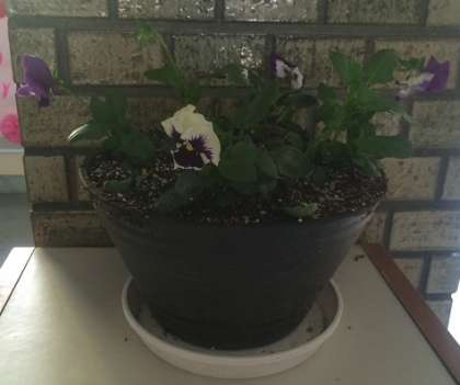 花苗ボランティアさんと飼育栽培委員会の子どもたちが、種から育てたパンジーが大きくなりました!!