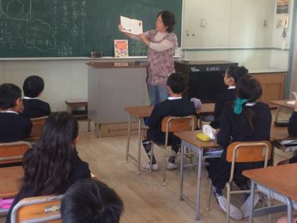 今朝は、ボランティア「ほうせんか」のみなさんによる低学年への読み聞かせがありました。今年度最後です。「かもとりごんべえ」「ながぐつをはいたねこ」「ちびくろさんぼ」など、時間いっぱい読み聞かせをしてくださいました。