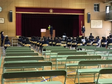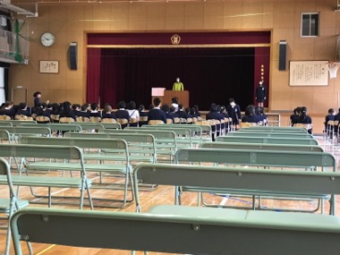 会場には椅子が並べられ、本番と同じセッティングです。体育館の入口から入ると、ピーンと張りつめた空気が漂っていました。