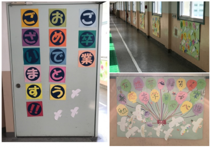 いよいよ卒業式の前日となりました。明日の式に登校するのは卒業生だけですが、式に参加しない他の学年のみんながいろいろな形で卒業を祝っていました。