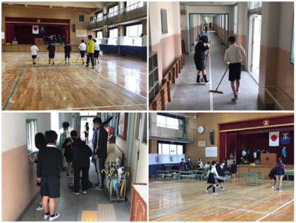今日は新6年生が登校し、教職員と一緒に入学式の会場準備をしました。