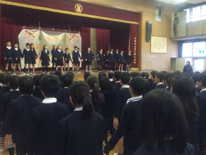 明日27日(金)の1時間目、「卒業を祝う会」を児童会の主催で行います。今日の児童集会は、その最終練習をしました。