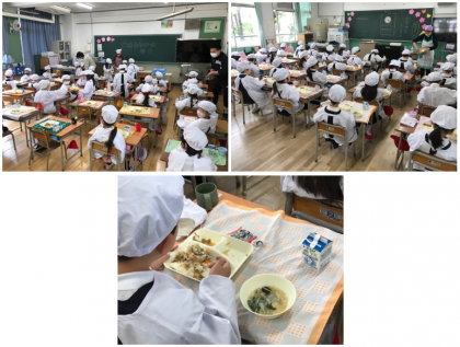 1年生の給食の様子です。「ごはんもおかずも全部おかわりしたよ」と話しかけてくれる児童もいました。