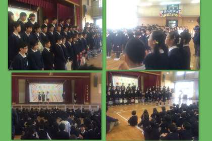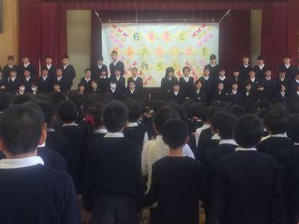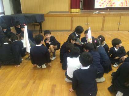27日(金)1時間目、「卒業を祝う会」を行いました。たてわり班でお世話になった6年生にプレゼントを渡したり、運動委員会の考えた○×クイズをしたり、お祝いの言葉と歌をプレゼントしたりと、楽しい思い出の1ページを作ることができました。
