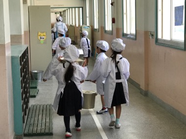 1年生が入学して3週間が過ぎました。給食の係もしっかりとできるようになりました。