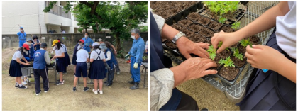 5月14日に、飼育栽培委員会のみんなが、淀川区の緑化ボランティア「夢ちゃん花づくり隊」の方々や十三公園事務所の方々にお手伝いいただき、夏の花の種まきをおこないました。