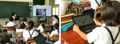 国や地域について調べ、一人一台端末を使ってプレゼンテーションをしていました。