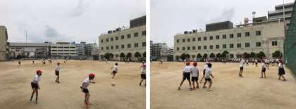 長休みの時間中には、児童たちが運動場で元気に遊んでいました。
