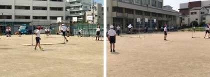 そんななか、6年生が運動場で走り高跳びに取り組んでいます。