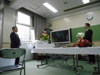 新しく、T教頭先生が、中央区南中学校より栄転されました。専門は、理科、特技はサッカー、趣味は、サイクリングや子どもとキャッチボールをすることだそうです。