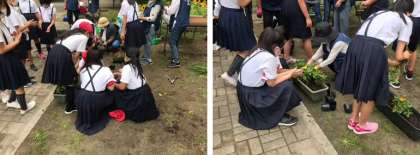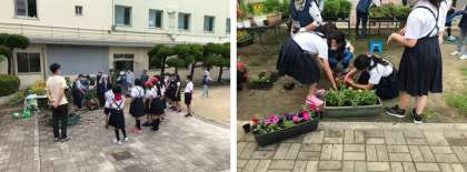 今日は、「夢ちゃん花づくり隊」の方々と一緒にプランターへの植え替えをさせていただきました。