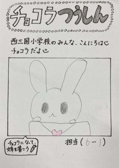 飼育栽培委員会(しいくさいばいいいんかい)のお友(とも)だちが、チョコラ通信(つうしん)を書(か)いてくれたよ。チョコラをすごくかわいく描(か)いてくれたよ!