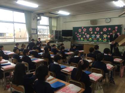 教室に戻って先生のお話を聞きました。校長先生のお話にあった「しっかり聞くと学校生活が楽しくなりますよ。」ということを、すぐに実践しているようでした。