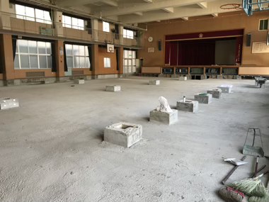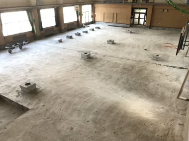 そんな暑い中、業者の方々が講堂床工事を進めてくださっています。
