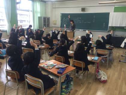 新しい教室で教科書を手にした子ども達。担任の先生や友達もかわって「さあがんばるぞ!」と新たな気持ちで話を聞いていました。「今日から!」という節目を大切に、しっかり目標を立ててがんばってほしいです。