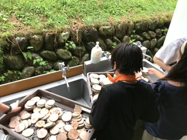 それぞれが自分の感性を研ぎ澄まして、コースターになる木との選んでいます。大切な出会いの時です。