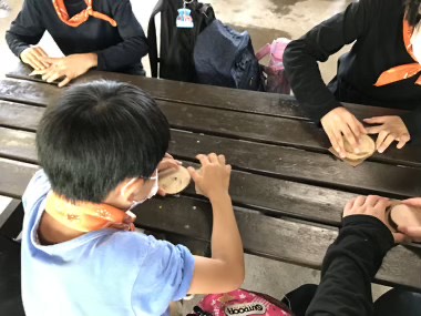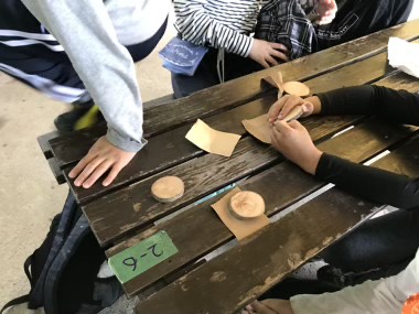 選んだコースターを一生懸命紙やすりで削ります。