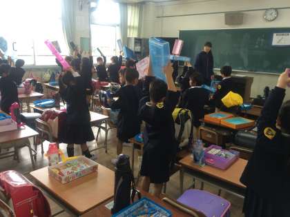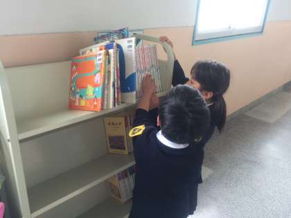 家に持って帰るものは、全部ランドセルに入れたかな?とお道具箱の中を確認しています。廊下に置いてある本棚(ブックトラック)から本を探して読む子もいました。また淀川図書館からたくさん本を借りて、学級文庫をそろえる予定です。