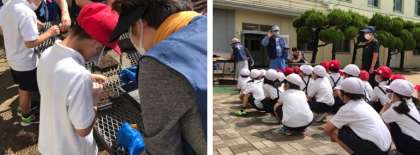 今日は2年生のみんなや飼育栽培委員会のみんなが、淀川区の緑化ボランティア「夢ちゃん花づくり隊」の方々や十三公園事務所の方々にお手伝いいただき、冬の花の種まきをおこないました。