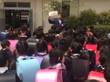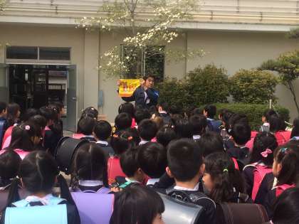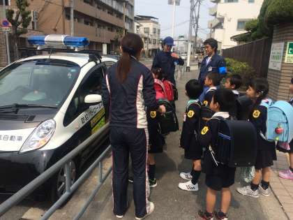 淀川区役所の「セーフティー淀川」パトロールのNさんのお話を聞きました。「しらないひとについていかない」「出かけるときは、どこに、だれといくか言ってから」などの注意事項を聞きました。困ったとき、怖い思いをしたときには、「子ども110番の家」にとびこもう!といったお話もありました。登下校時見守りをしてくださっている青色パトロール車も見せてくださいました。いつもありがとうございます。これからもよろしくお願いします。