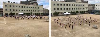 1年生 団体演技練習の様子です。本番に向けたダンスの練習はもちろんですが、入場の仕方も確認していました。
