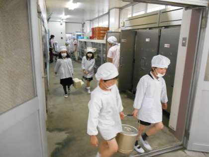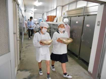 協力して運びます。調理員さん、ありがとうございます。いただきます!