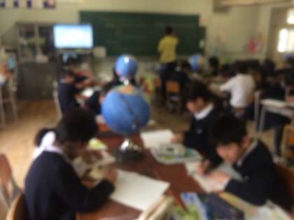 地球儀と世界地図を比べてみました。それぞれ特長があり用途によって使い分けることも学習しました。5大陸の名前なども確認しました。