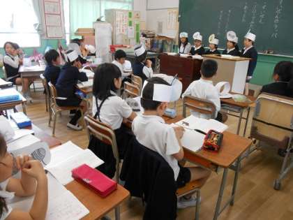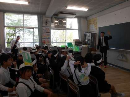 国語科「すいせんのラッパ」の音読劇の発表をしました。お面をつけてがんばりました。練習の時よりちょっと緊張した様子でした。