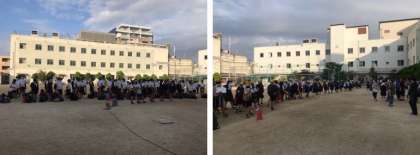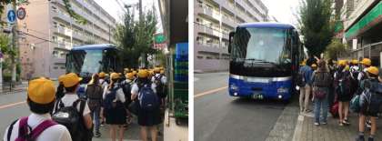 出発式では代表児童が『笑顔いっぱい、思い出いっぱいの楽しい修学旅行にしよう!』とめあてを確認しました。